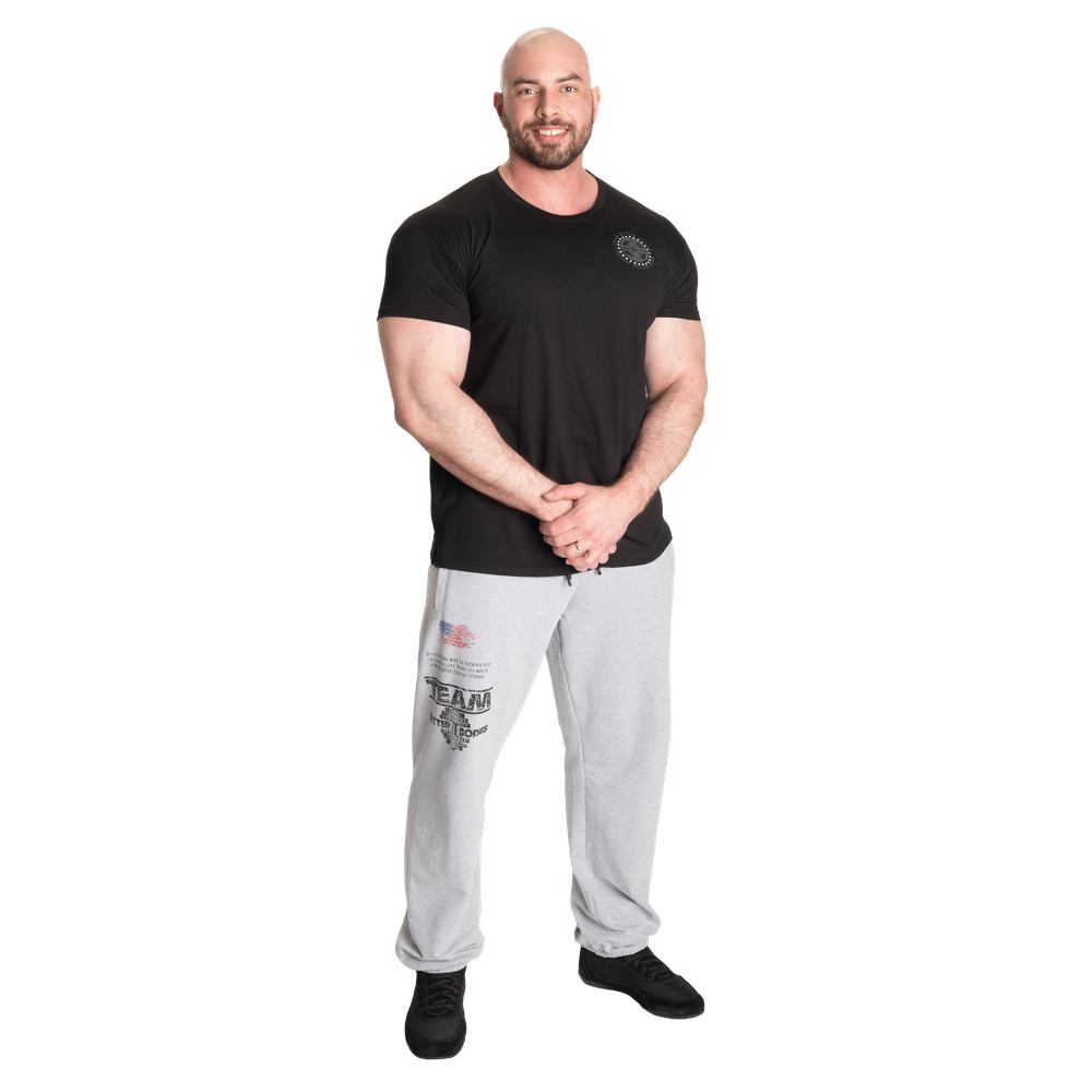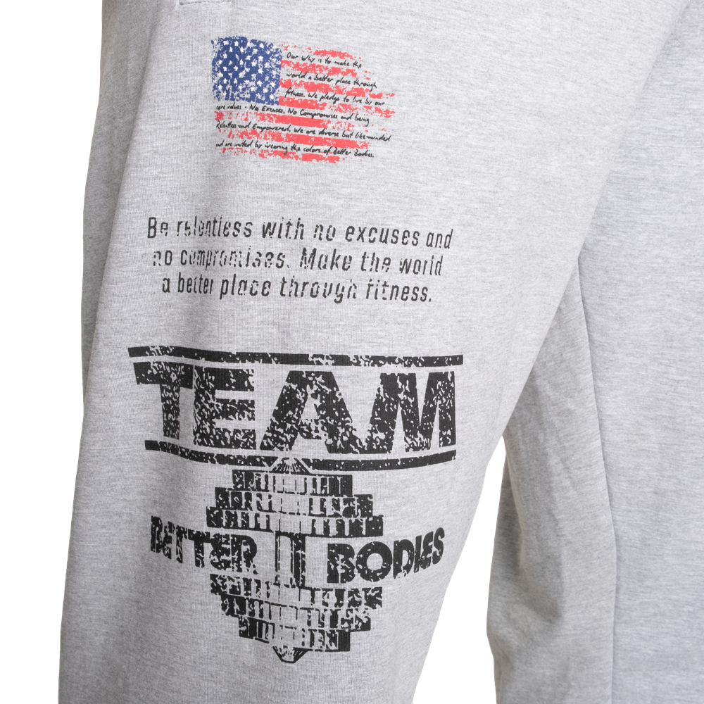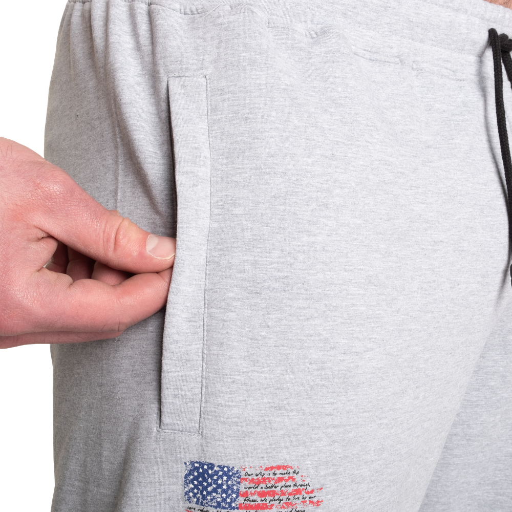 Features: Elastic in waistband and bottom cuff, drawstring in waist, front pockets with zip closure & print on thigh