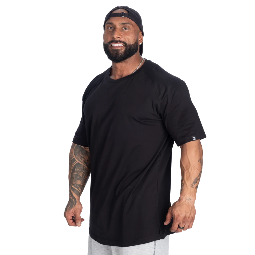 Constructed from a premium BCI cotton and elastane blend, the fabric delivers a smooth, structured feel with natural stretch. This tee maintains a clean, crisp surface that keeps the graphics sharp and the fit consistent over time. The raglan sleeves allow for unrestricted movement while enhancing shoulder definition, and the scooped bottom hem adds a timeless athletic silhouette.
