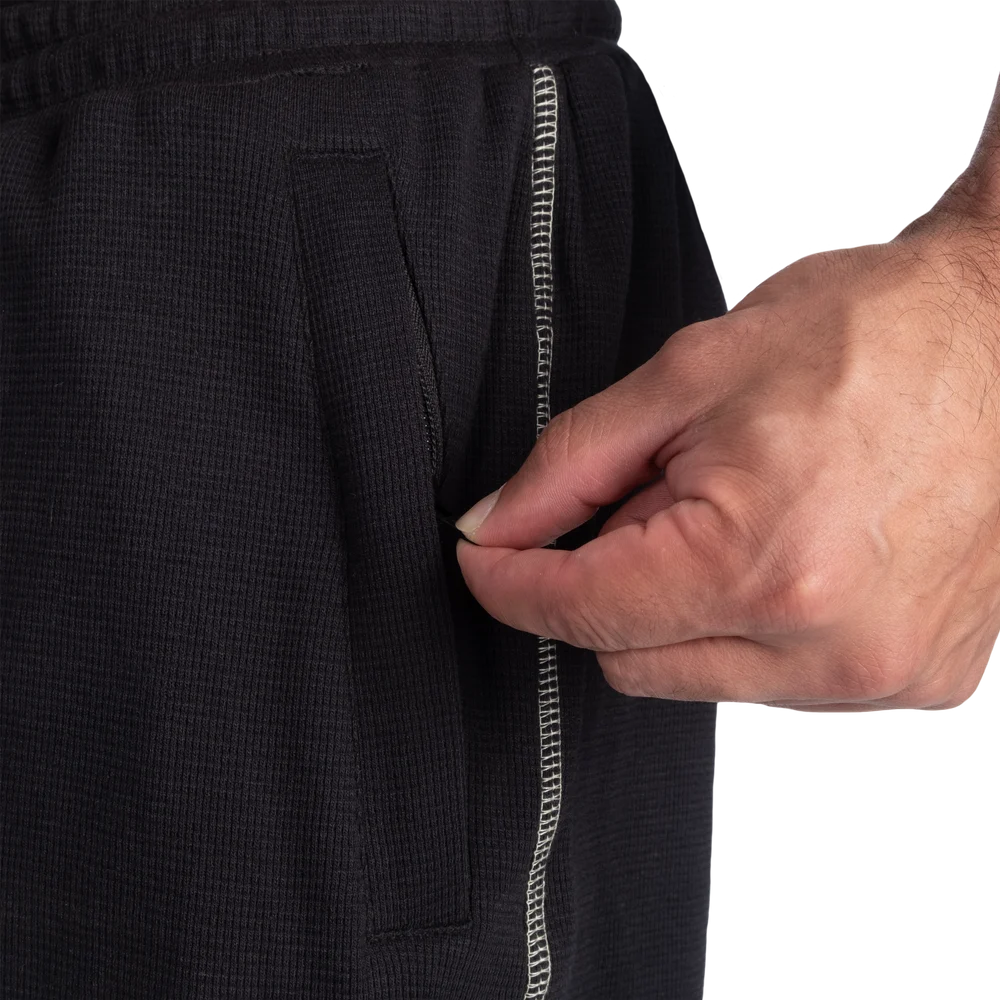 Features: Garment-washed finish, elastic waistband with drawstring, zippered pockets