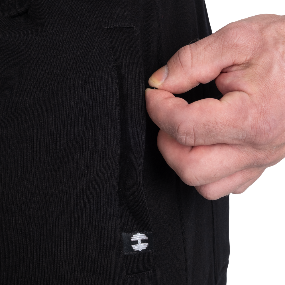 Features: Slub fabric, loose fit, zippered pockets, Team Better Bodies patch on waistband.