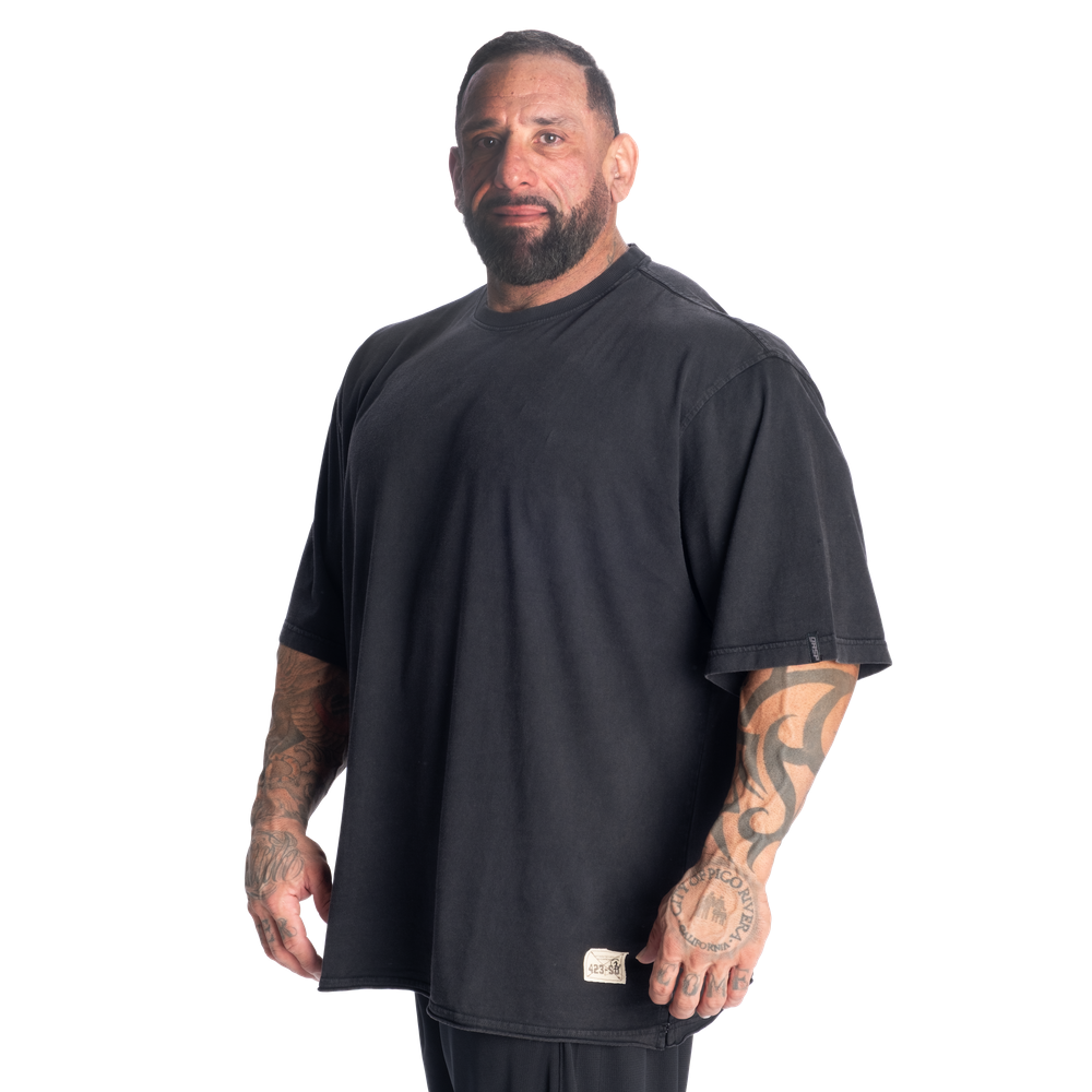 The vintage wash creates a rugged, lived-in look, while the loose fit allows full freedom of movement whether you’re pushing heavy plates or living the GASP lifestyle outside the gym. We’ve kept it clean and straightforward with a subtle tab on the sleeve and a small sewn-on patch along the bottom hem.