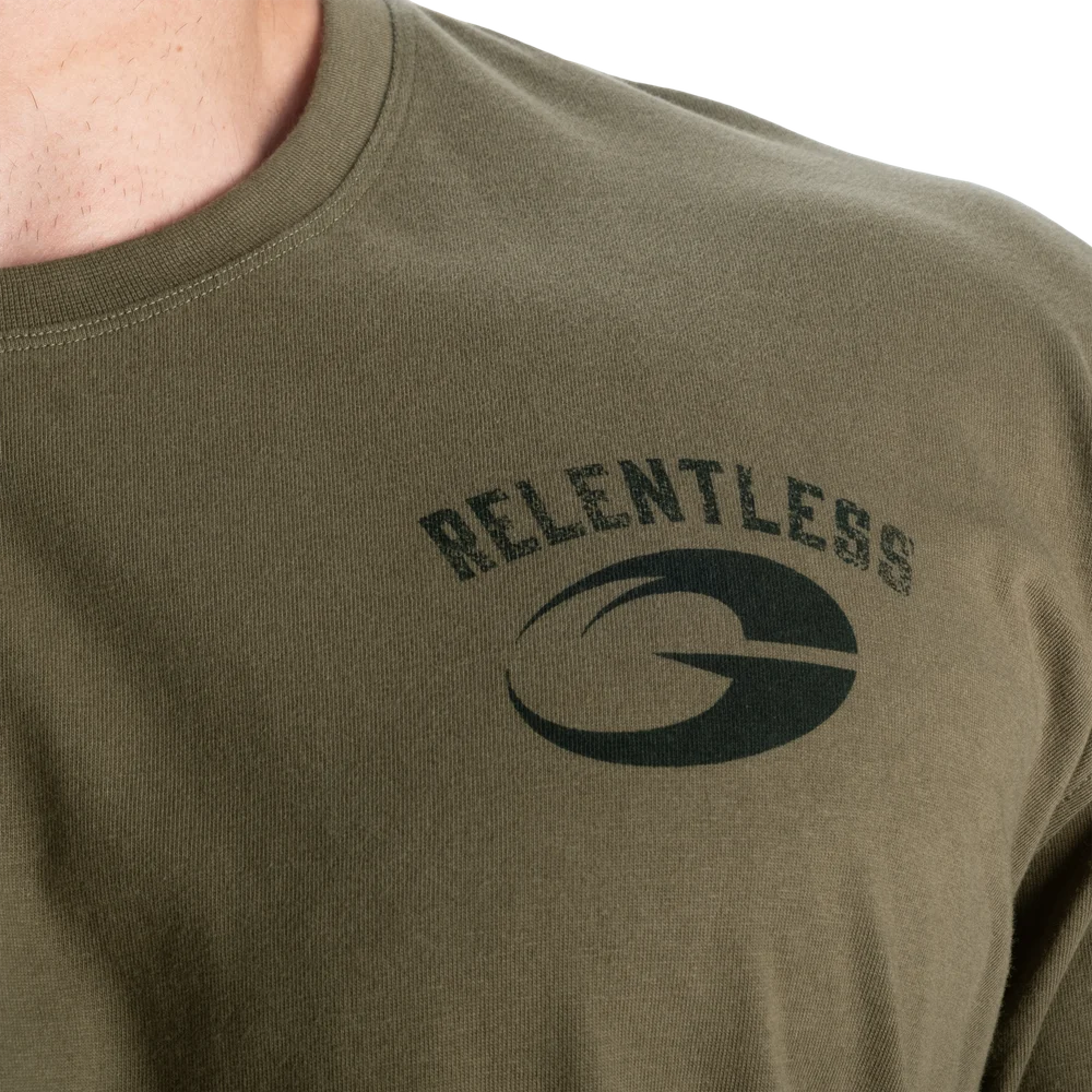 A clean chest print keeps the front minimal, while the iconic RELENTLESS graphic across the shoulders makes the statement for you. It’s a constant reminder of the mindset you bring into every session - disciplined, focused, and unwilling to quit.