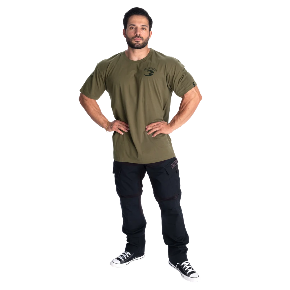 The Relentless Standard Tee is built for those who show up with purpose, power, and zero excuses. Crafted from 100% cotton, it delivers that classic feel while still giving you the comfort you need to move hard and train harder. The GASP Standard fit stays true - tighter across the sleeves and shoulders with a roomier mid-section, giving you freedom to lift, breathe, and grind without restriction.