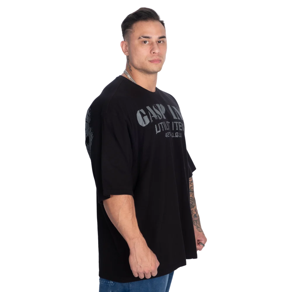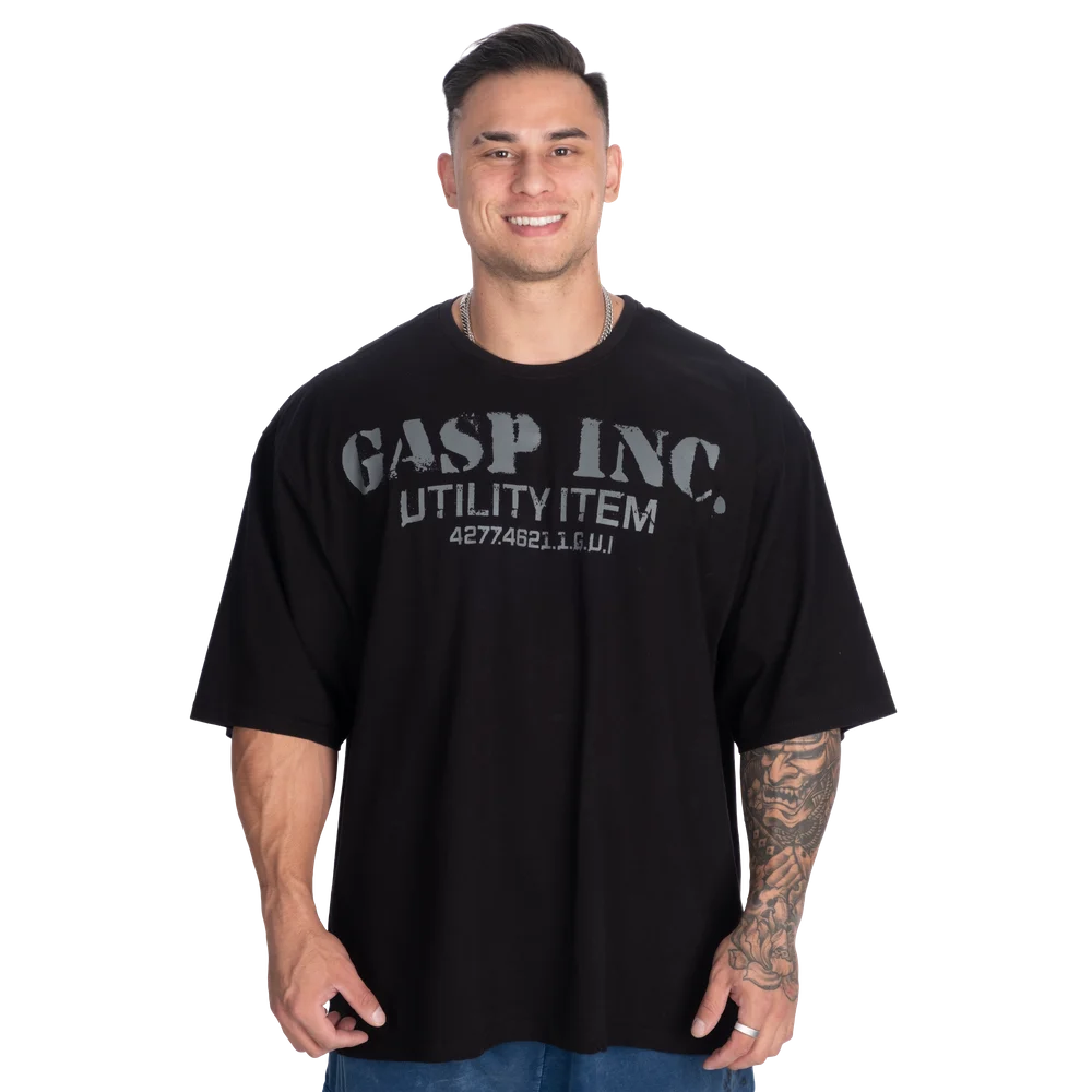 The front features a bold GASP INC. Utility Item print, and the back carries a large, distressed GASP graphic that stamps you as part of the iron community the moment you walk in. No compromise, no shortcuts — just a tee designed to perform under pressure and look even better with time.