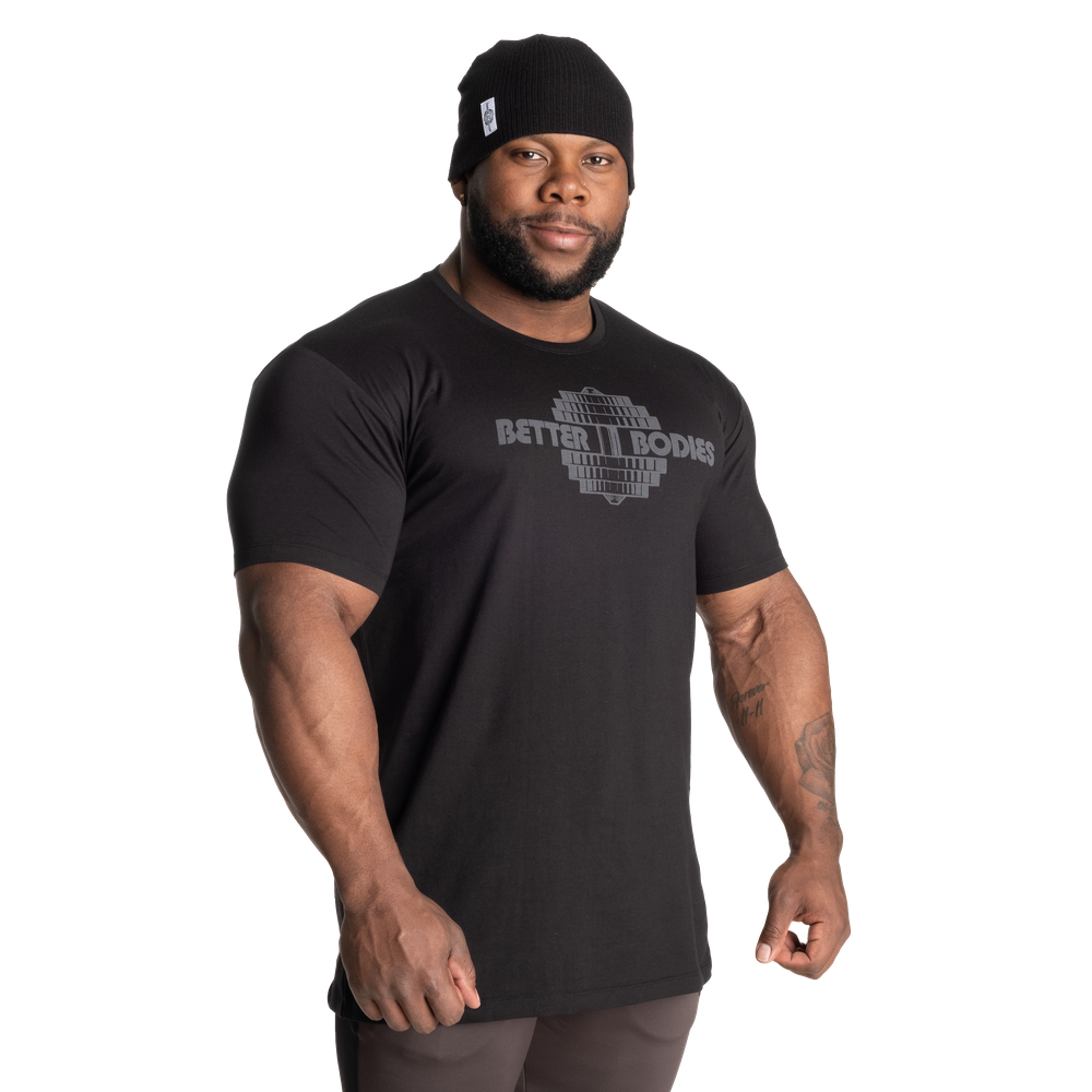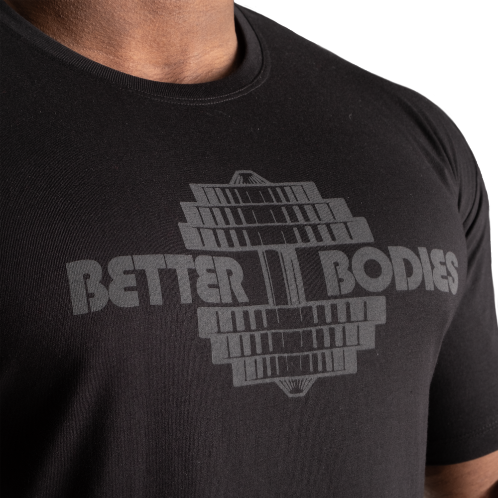 The Better Bodies Legacy Tee is standard T-shirt made in a cotton polyester blend that keeps its shape and color well through numerous workouts and washes.