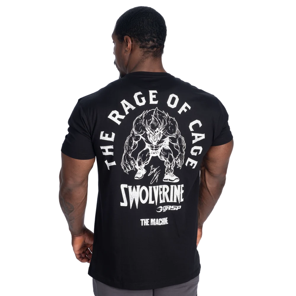 Features: Collaboration with Brian “The Machine” Cage, printed Swolverine logo at front chest, arge hand-drawn “Rage of Cage” artwork on back