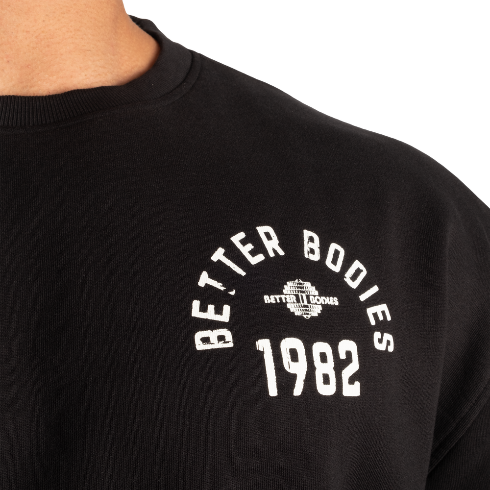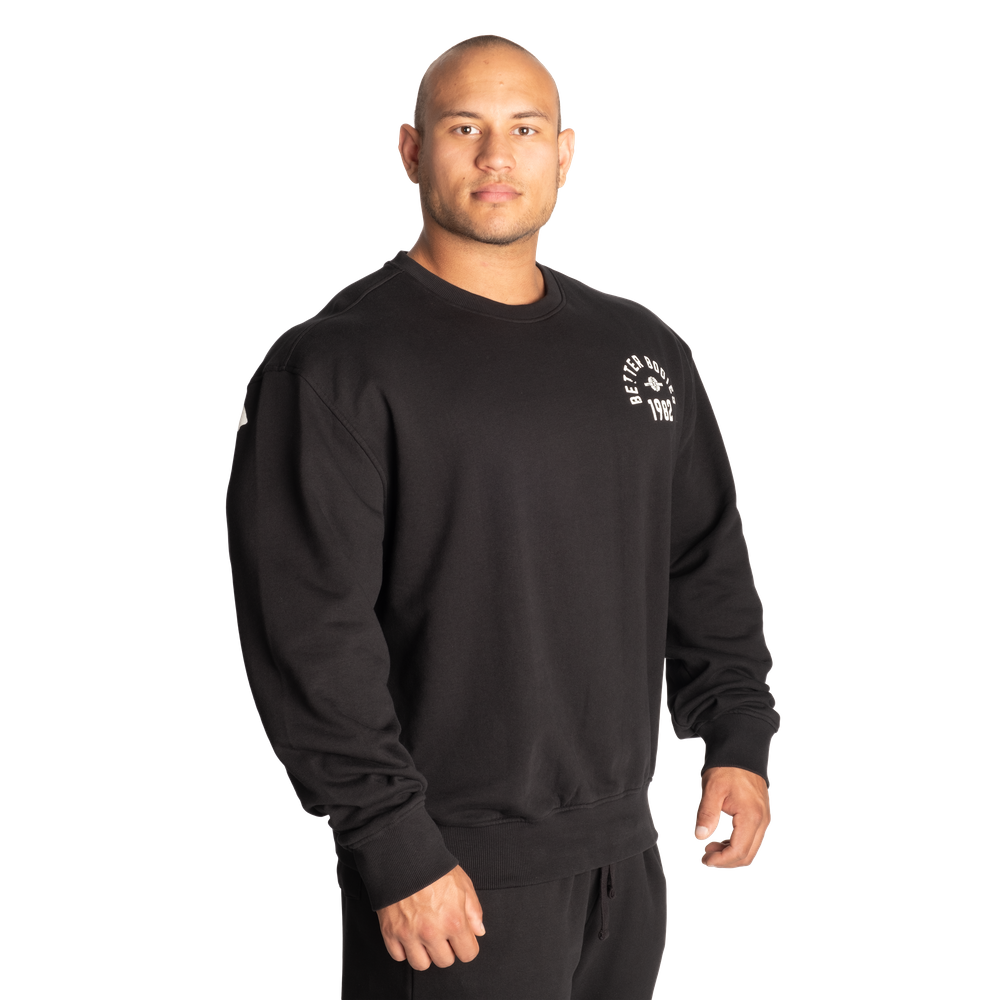 The Legacy Sweater is a loose fit and slightly oversized crew neck with a yoke seam at the back for a better fit as well as raw edges at the bottom and sleeve ribs.
