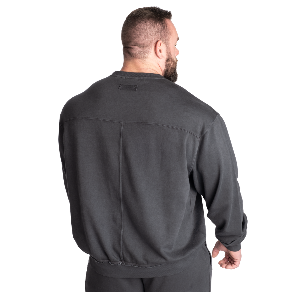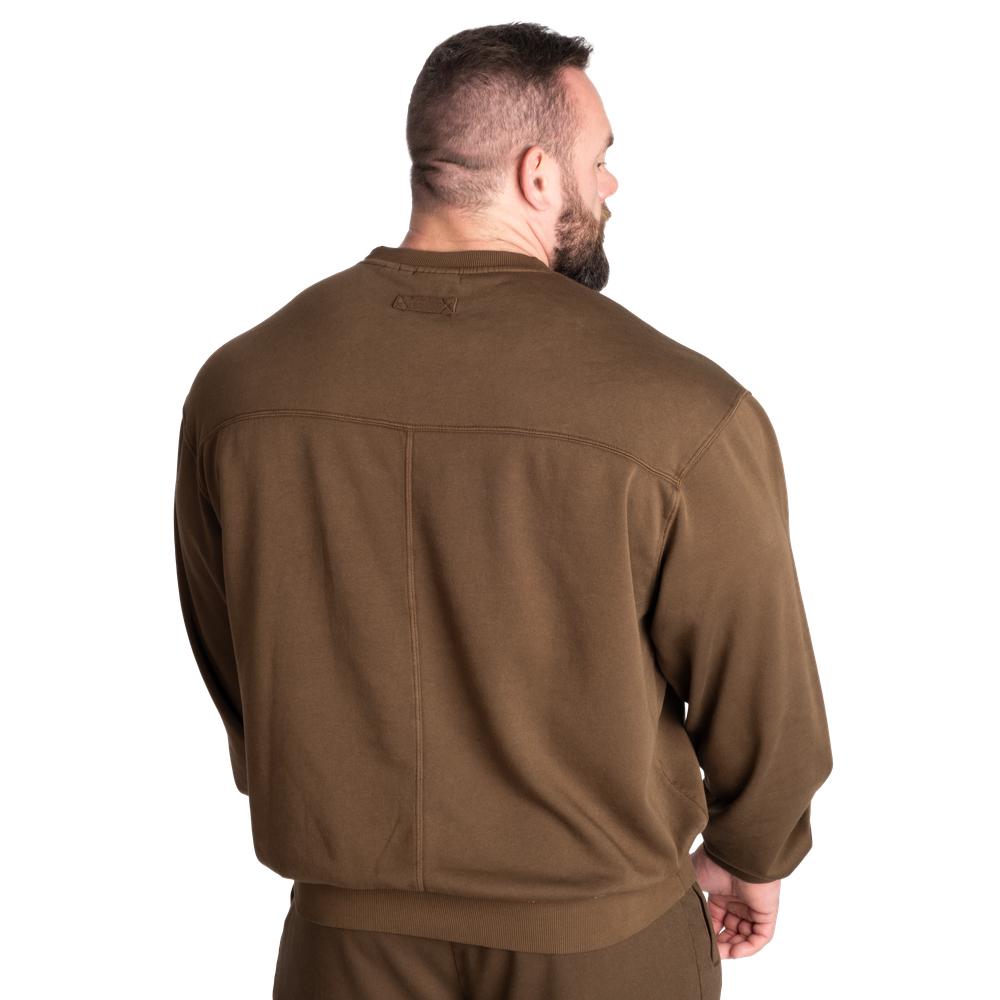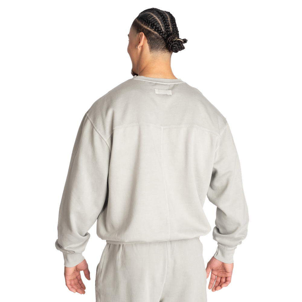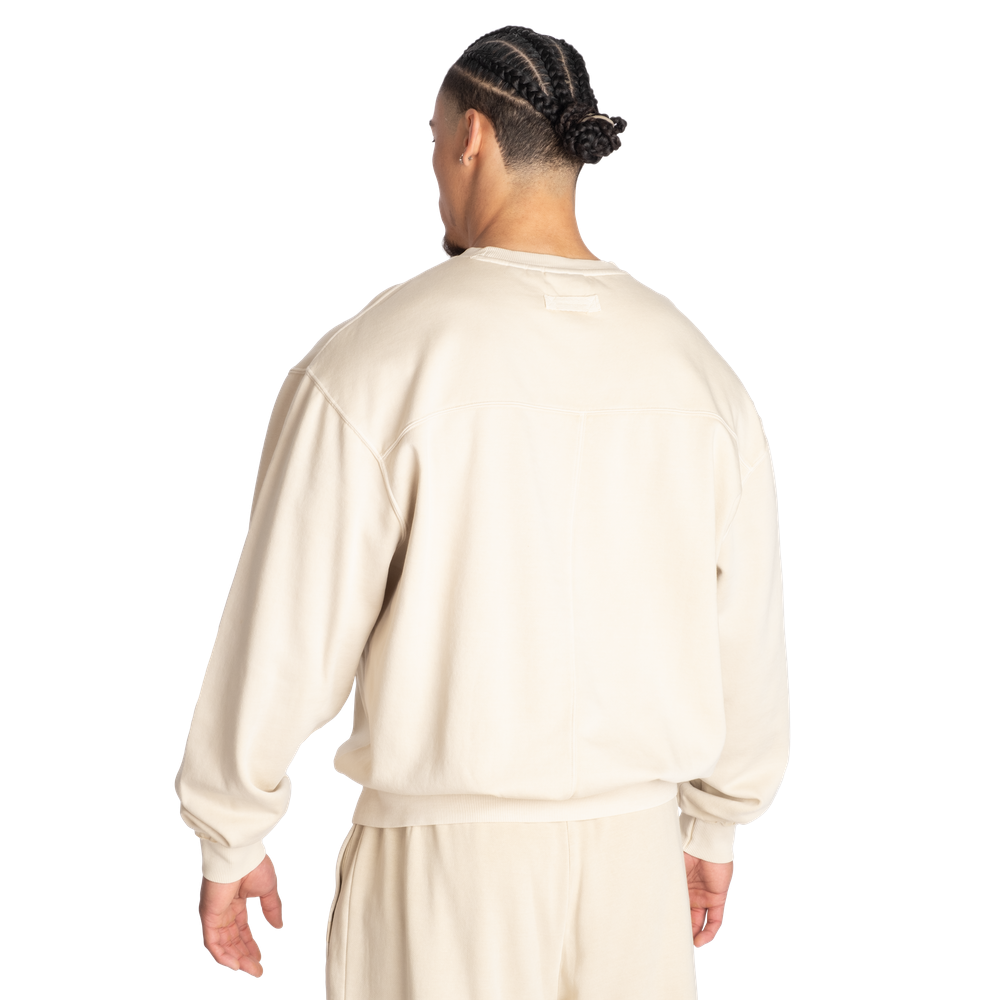 The fabric is soft and the inside is brushed while the outside has a soft feel. Further this sweater has a yoke seam across the chest and drop shoulders for a better fit.